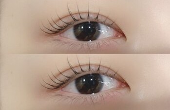 「根元は立ち上げたいけれど、毛先がまぶたに当たるのは嫌だ」「パリジェンヌだとキツい印象になる」というお悩みには、パリジェンヌの立ち上げ力と、従来のまつげパーマの柔らかいカールを組み合わせたハイブリッドなデザインを提案します。